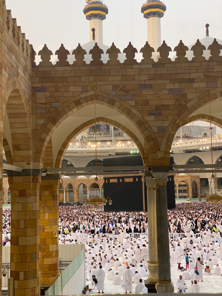My husband slips his hand into mine as we hold both our boys close to us, we slowly cross the gate and enter the haram area and within seconds we are swept away by the moving crowd and begin walking.